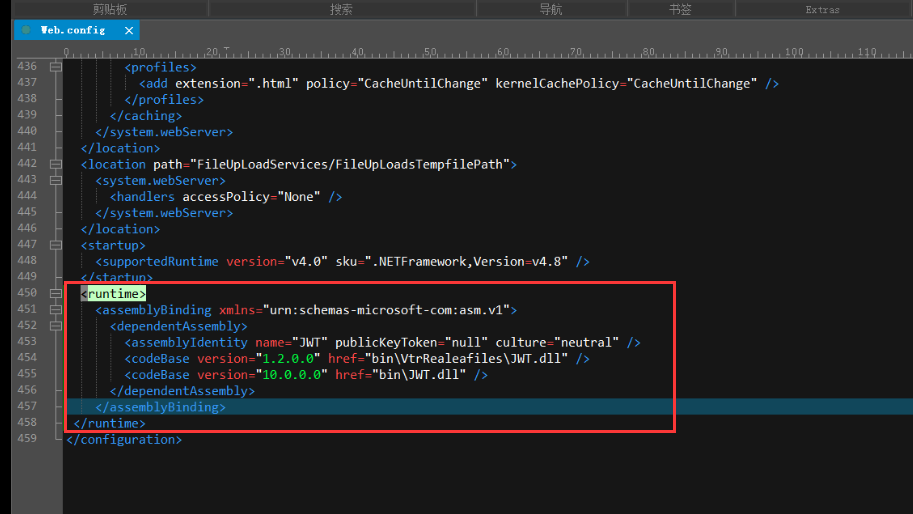 1、修改Web.config文件增加以下内容,实现同时运行多个版本JWT.dll: