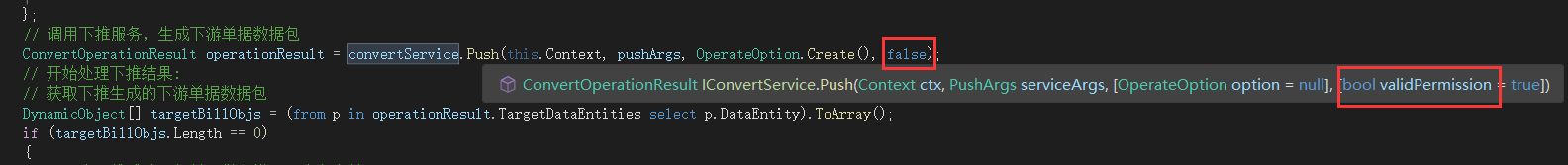 金蝶下推服务默认校验权限,提交审核等操作服务默认不校验权限