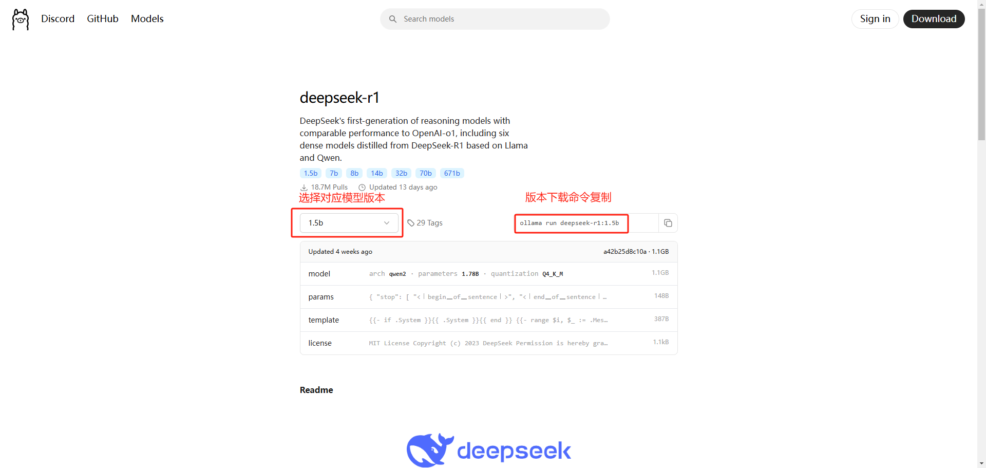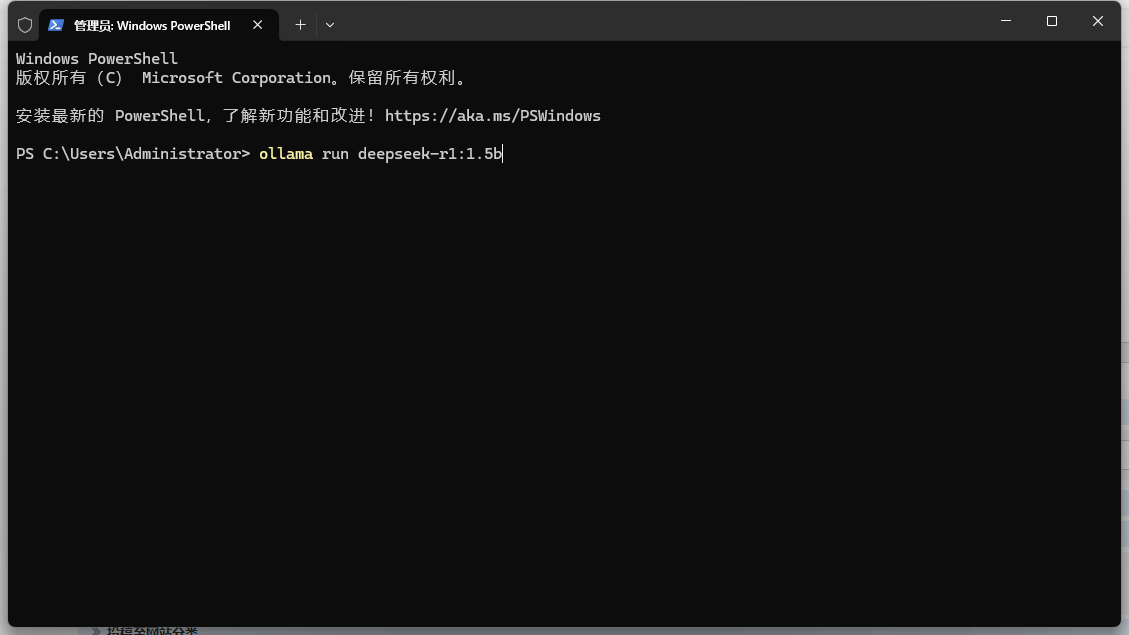 下载模型,打开windows PowerShell窗口然后回车执行:ollama run deepseek-r1:1.5b