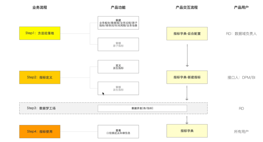 其中和指标体系方法论强相关产品就是指标字典工具的落地,其产品的定位及价值: