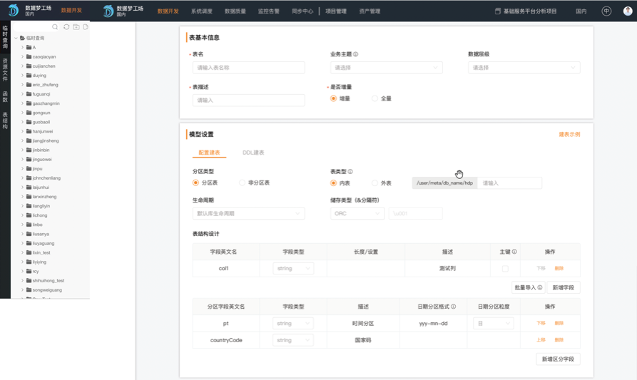 技术信息对应维度的数据信息,由数据研发维护,主要包括是否有维表(是枚举维度还是有独立的物理维表)、是否是日期维、对应code英文名称和中文名称、对应name英文名称和中文名称。如果维度有维度物理表,则需要和对应的维度物理表绑定,设置code和name对应的字段。如果维度是枚举维,则需要填写对应的code和name。维度的统一管理,有利于以后数据表的标准化,也便于用户的查询使用。