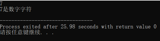 #include <stdio.h> int main() { char x; x = getchar(); if(x>='0'&&x<='9' ) printf("%c是数字字符\n", x); else if(x>='a'&&x<='z'||x>='A'&&x<='Z' ) printf("%c是英文字母\n", x); else printf("%c是其它字符\n", x); return 0; }