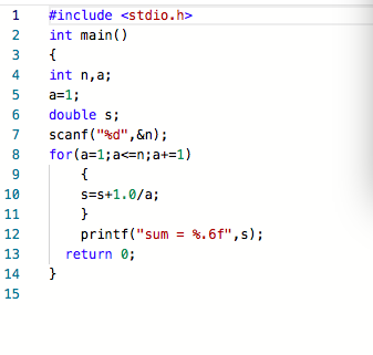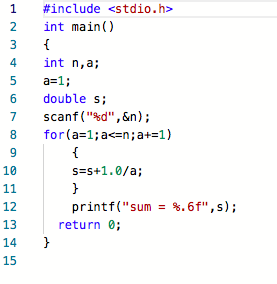 本题要求编写程序,计算序列1+1/2+1/3+...的前N项和