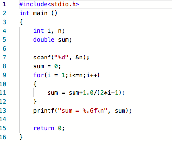 数据处理:表达式sum=sum+1.0/(2*i-1)