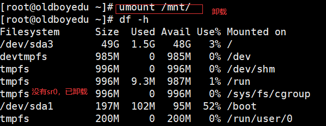 注:取消挂载用 umount /挂载点