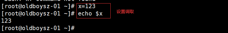 1.临时设置变量 : x = 12 echo $x(调取变量值)