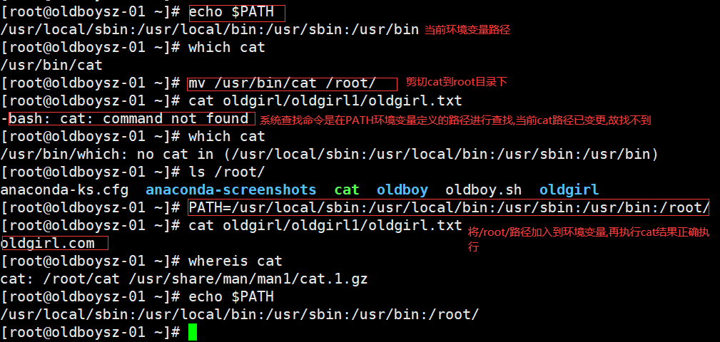 1.路径环境变量 : PATH(系统命令所在路径)