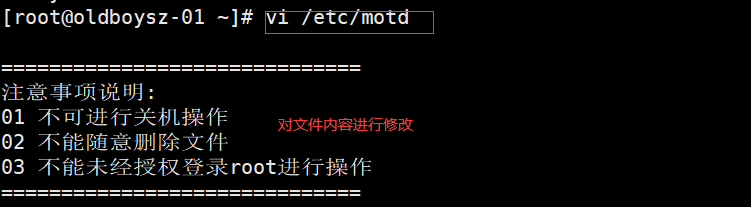 /etc/motd :可以对登录操作系统的用户进行注意事项说明