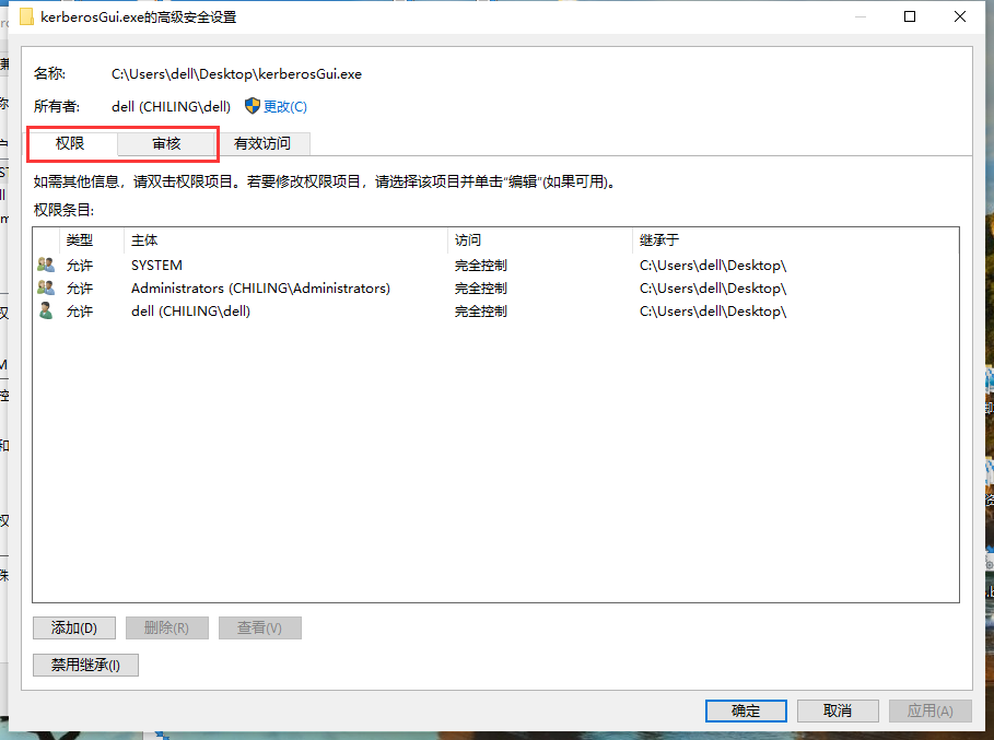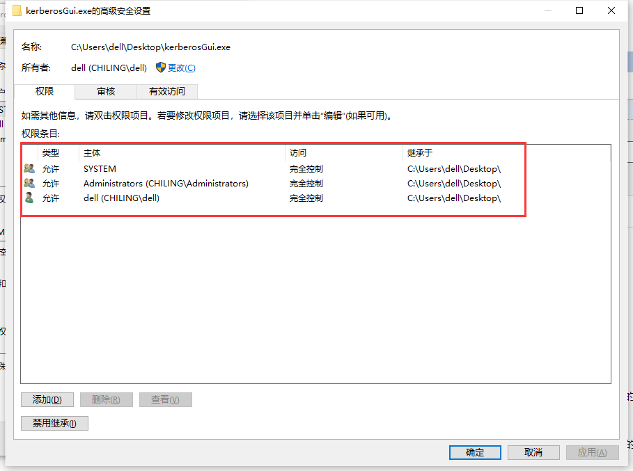 DACL自由访问控制列表:对对象持有者控制访问对象,并标明特定的用户,特定的组是否能持有对象。简单一句话就是说,定义哪个用户,或哪个用户所属的组访问该对象的权限。