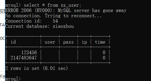 4、攻击者打开自己的mysql服务器查看,读取成功!