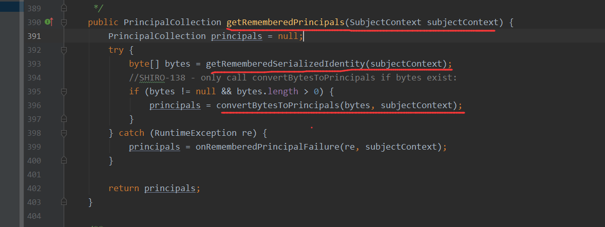 而调用这个方法的则是它的父类org/apache/shiro/mgt/AbstractRememberMeManager.java#getRememberedPrincipals