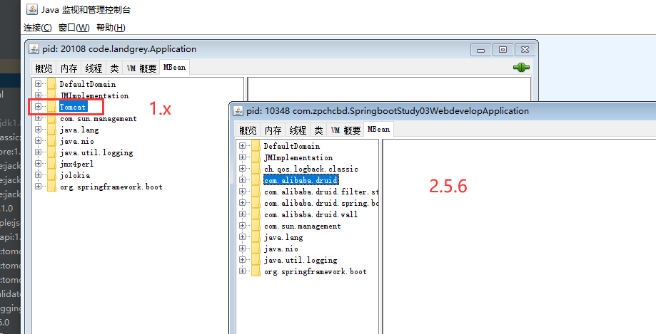 有个疑问点还是不太懂,因为Tomcat是SpringBoot内嵌的,并且MBanFactory是存在于Tomcat中,为什么有些环境是Tomcat,可是相关的MBanFactory却不存在于jolokia中?如下图所示一个是1.4.0 一个是2.5.6 但是2.5.6就不存在相关的MBeanFactory,原因不知道,希望懂得老哥可以指点下!