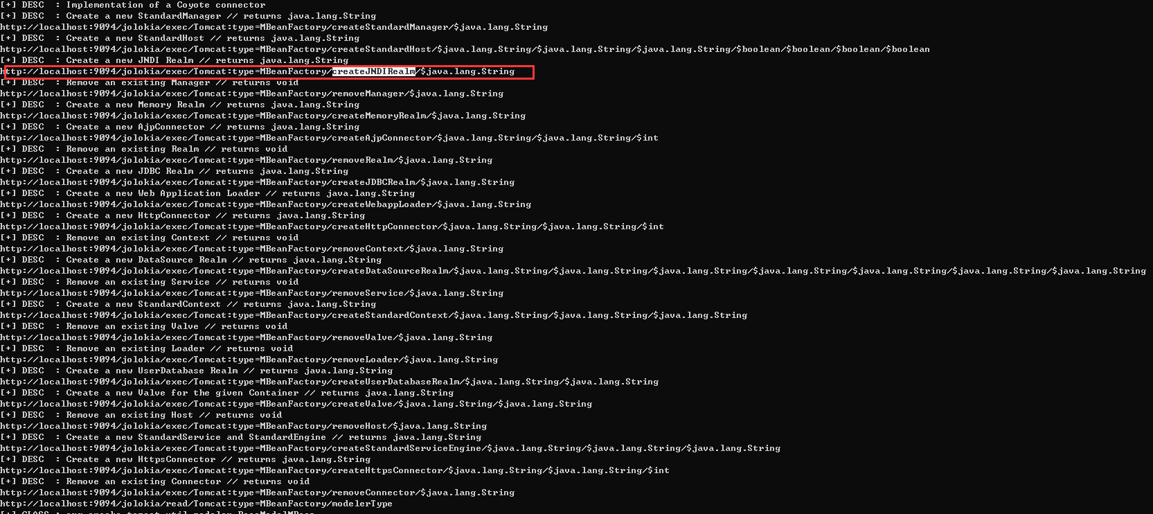 探测可利用MBean,发现存在相关的createJNDIRealm方法