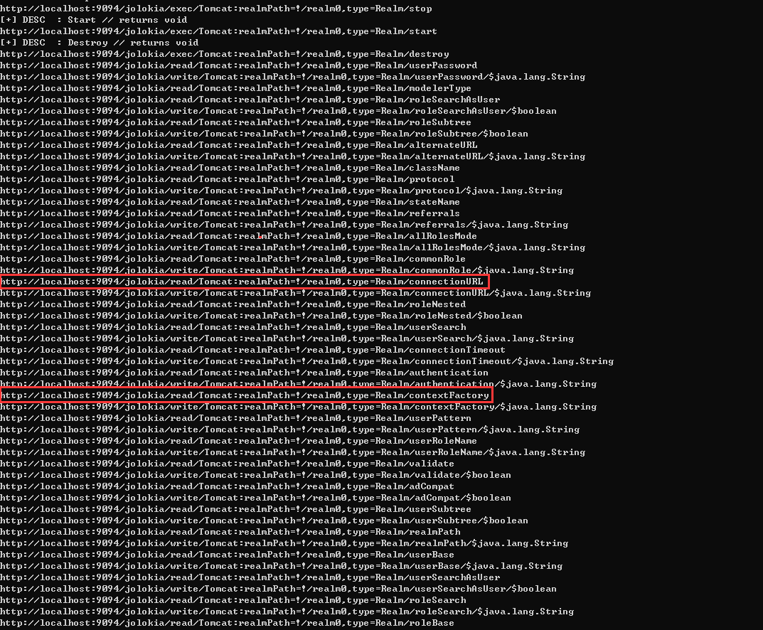 http://localhost:9094/jolokia/write/Tomcat:realmPath=!/realm0,type=Realm/contextFactory/$java.lang.String