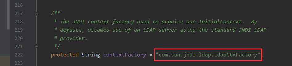 这里还需要说下,默认的createJNDIRealm创建的JNDIRleam对象,它默认就存在相关的contextFactory,如下所示