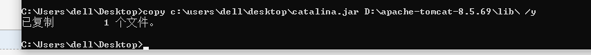 C:\Users\dell\Desktop>copy c:\users\dell\desktop\catalina.jar D:\apache-tomcat-8.5.69\lib\ /y