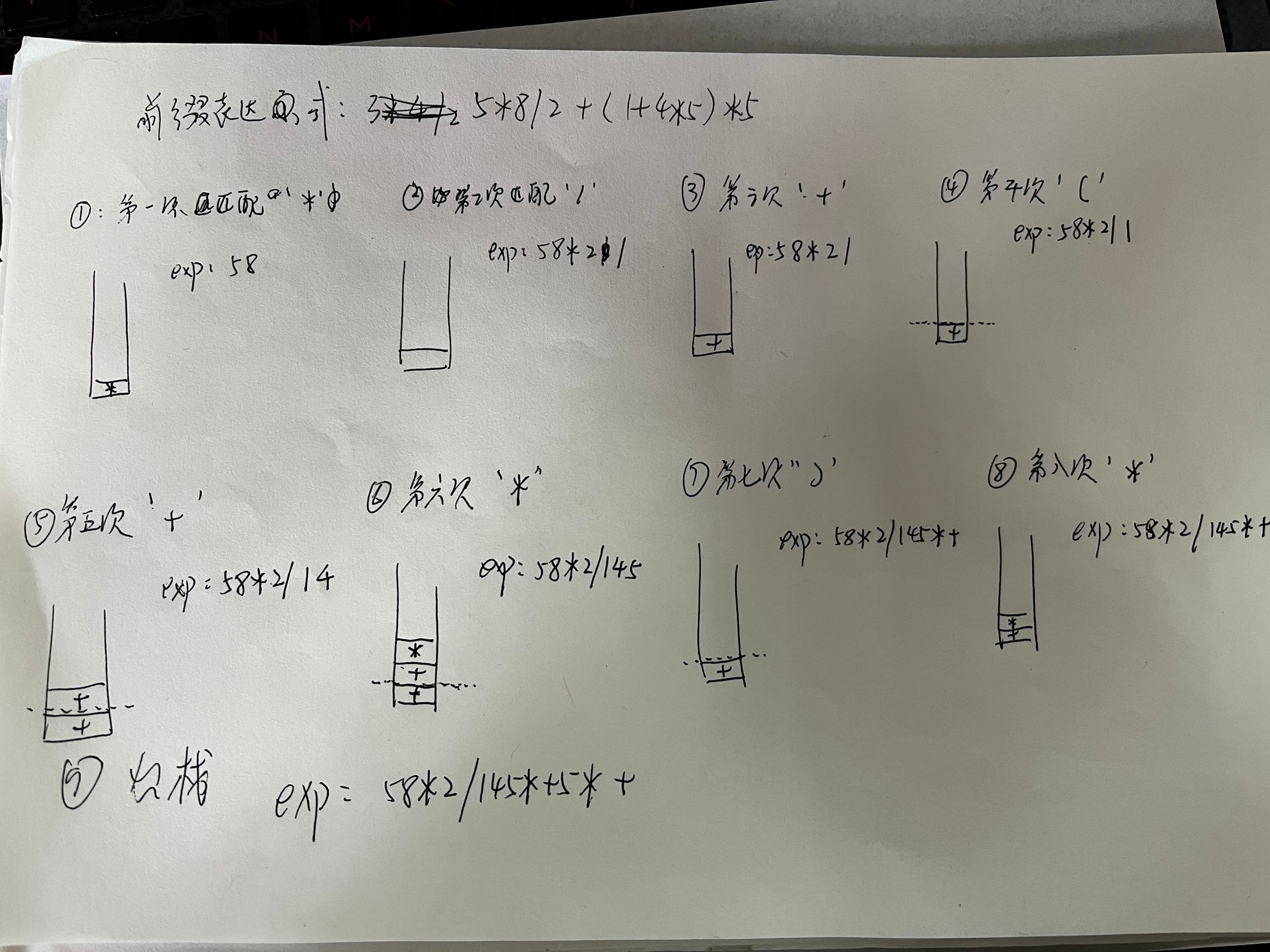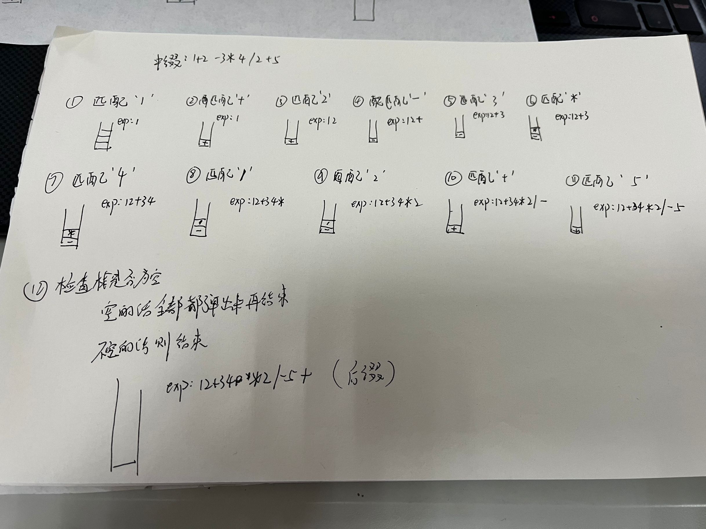 // 此时如果左括号压进去了,接着你匹配到一个+号,那么正常来走的话就意味着需要直接把括号直接出栈,