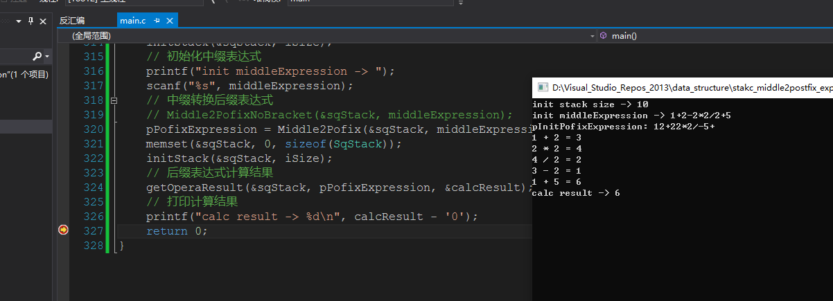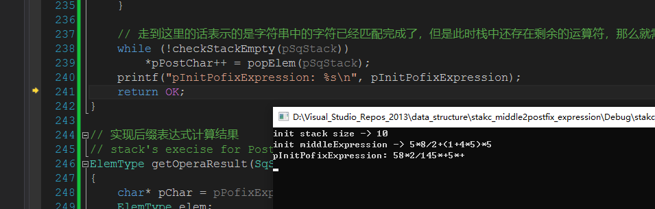 // getOperaResult(&sqStack, pPofixExpression, &calcResult);