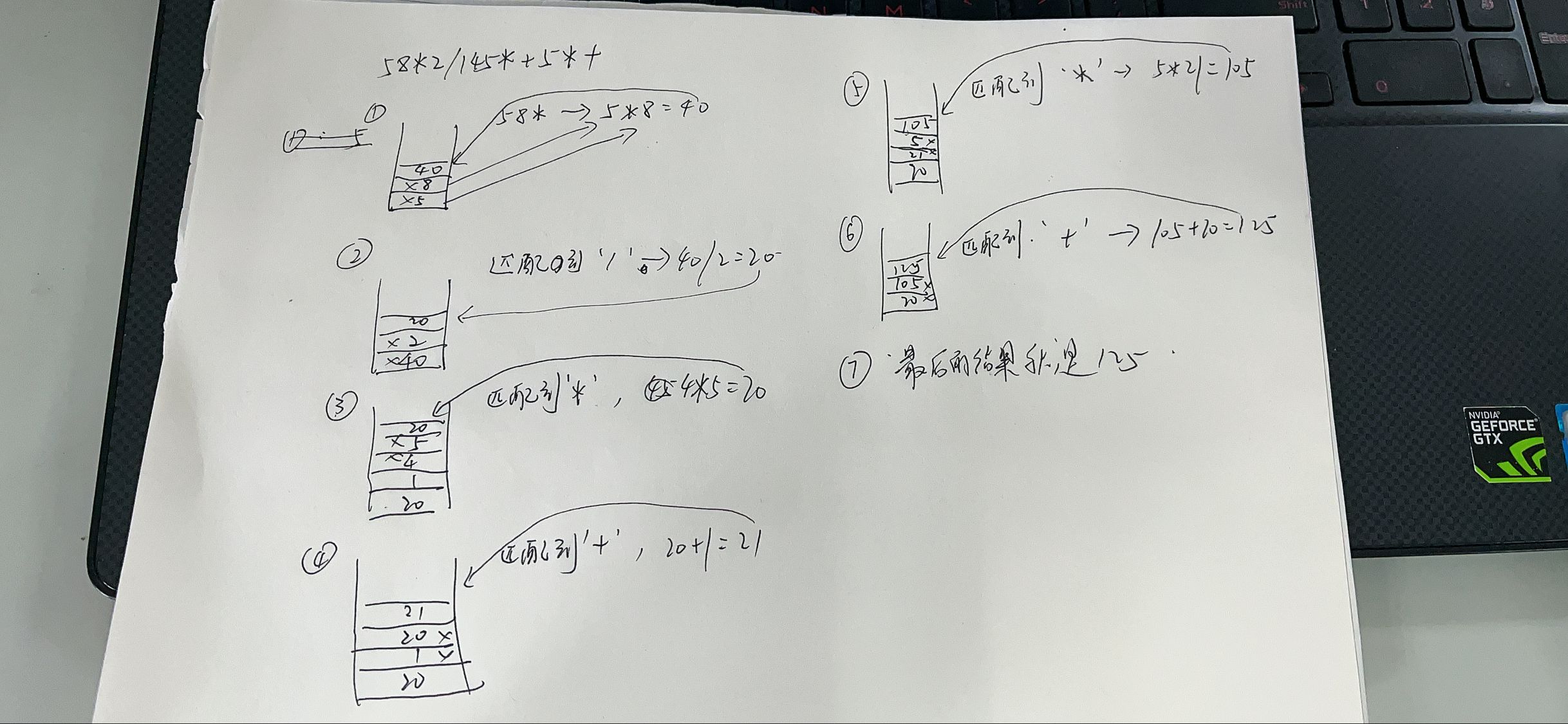 我这里也同样画了一张画来进行演示,这里比如就是 中缀表达式 5*8/2+(1+4*5)*5