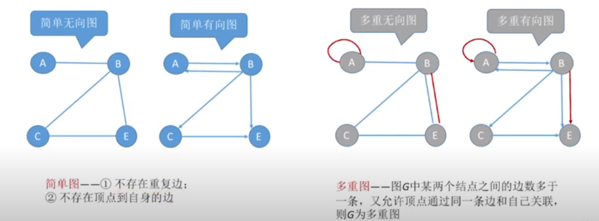 关于简单图和多重图,这里放个图,学习的其实都是简单图