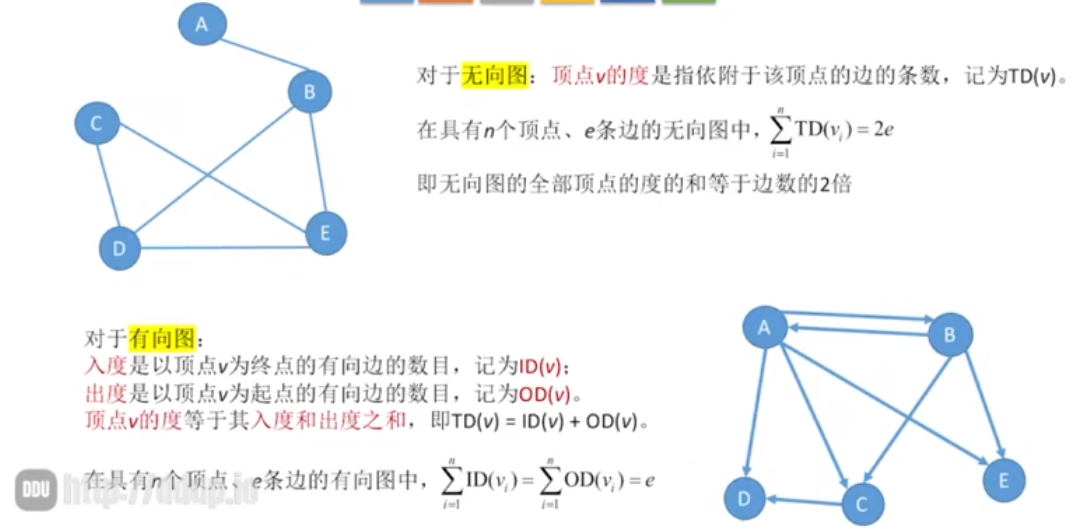 所以这里会发现对于无向图来说的话,就没有出度和入度之分,只要连接到这个顶点上的边都被称之为度