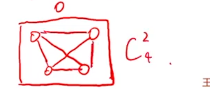 - 如果n个顶点的无向图G,如G是非连通图,在最多有C(2上)(n-1下)条边,如下图所示,四个顶点,如果想要保持非连通图,那么就多可以是6条边,如果多加了一条,那么就称为连通图了