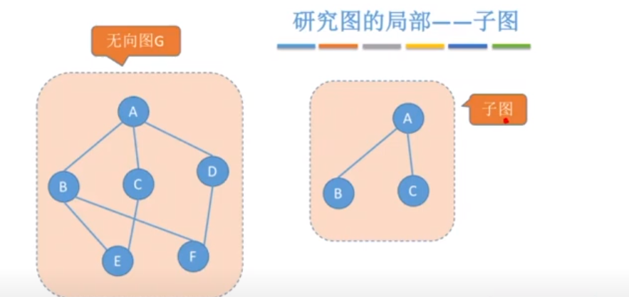如下图所示,ABC三个顶点和A-B B-C这两条边都是V和E的子集,所以这个ABC可以称之为子图