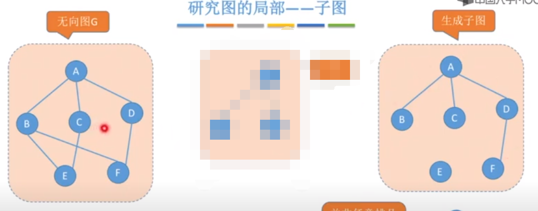 关于子图的概念:设有两个图G=(V,E)和G'=(V',E'),若V'是V的子集,且E'是E的子集,则称G'是G的子图