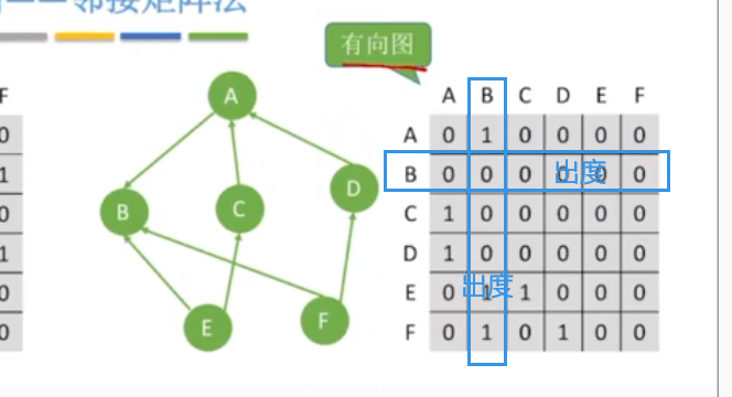 而在有向图中,有向图大家都是知道的,因为是有向的,所以入度和出度都是不同,所以如果想要统计有向图的顶点的入度和出度的话,那么就需要分别计算邻接矩阵的行和列