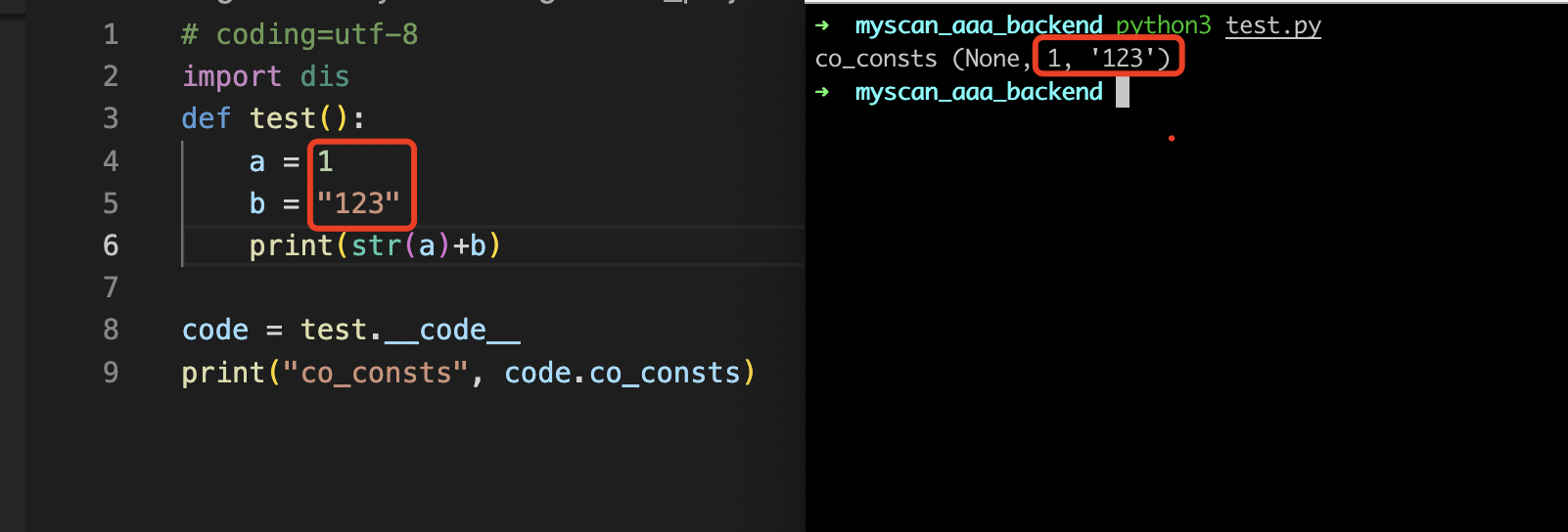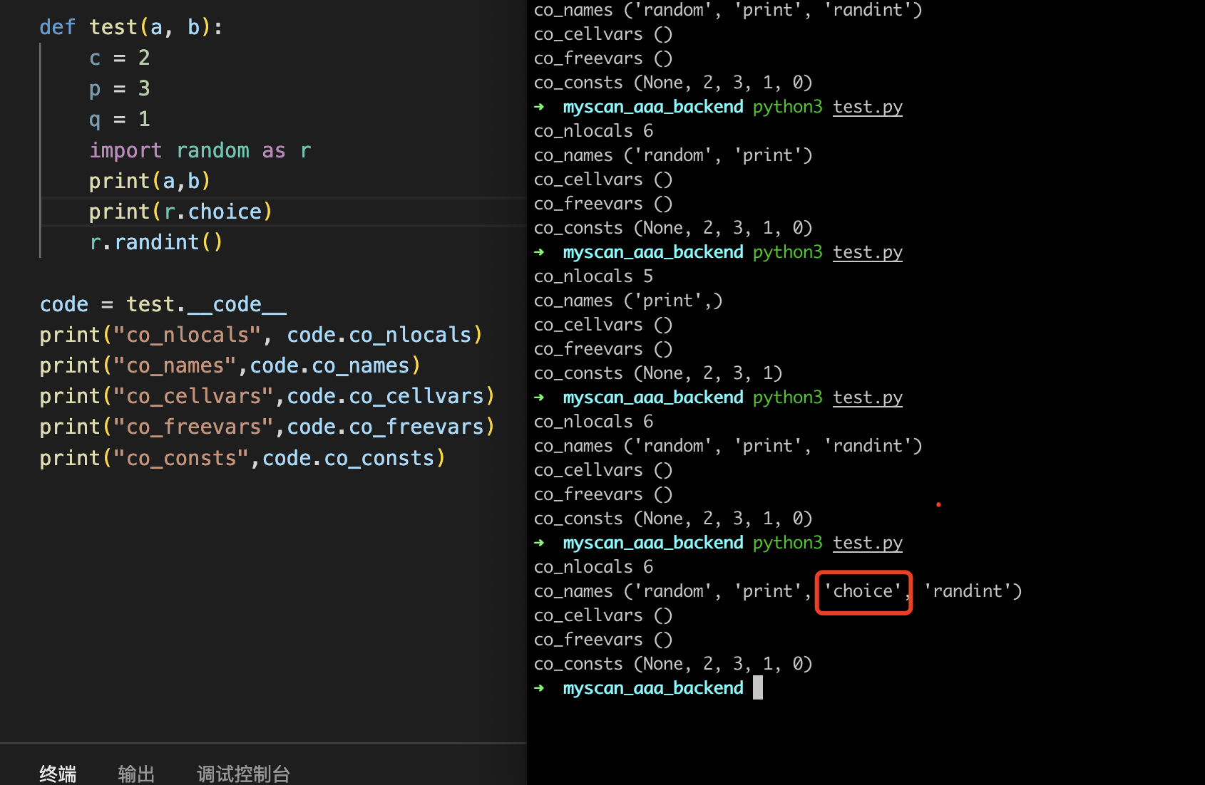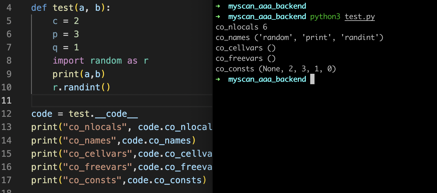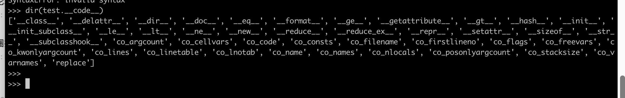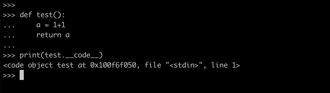 那么可能会有一个问题为什么打印的是__code__属性?实际上这里__code__属性代表的是当前要执行的bytecode,也就是对应的CodeObject对象,在cpython运行的时候需要的就是这段bytecode