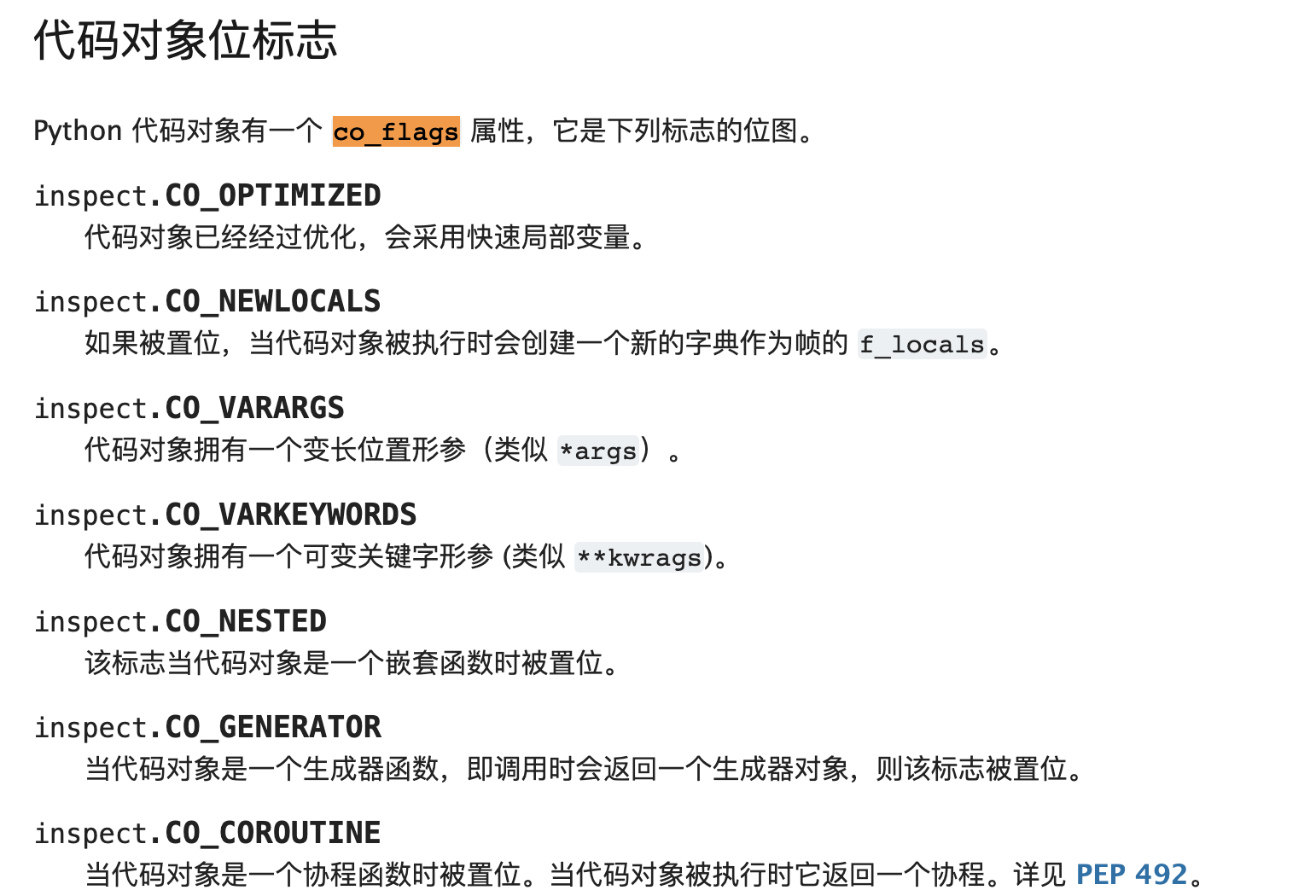 co_flags用来描述当前函数的形式的标识位,它可能代表的是不同的含义,比如正常函数和生成器函数,那么情况就可能就不一样