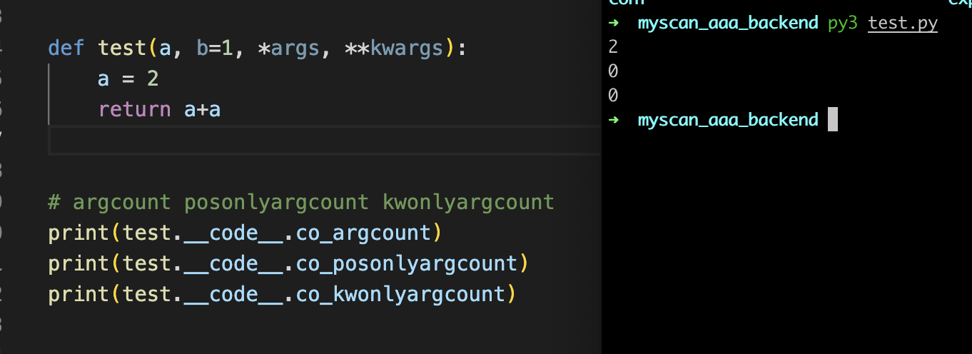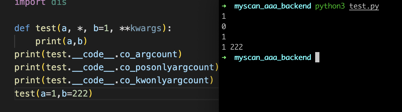 co_kwonlyargcount也是类似,需要配合*标志符,此时的*标志代表的就是args,此时的起到的分割作用,代表此时co_kwonlyargcount的数量为1