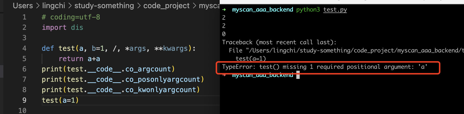但是这边的co_posonlyargcount如何理解呢?其实这个co_posonlyargcount还需要配合/标志符来进行学习