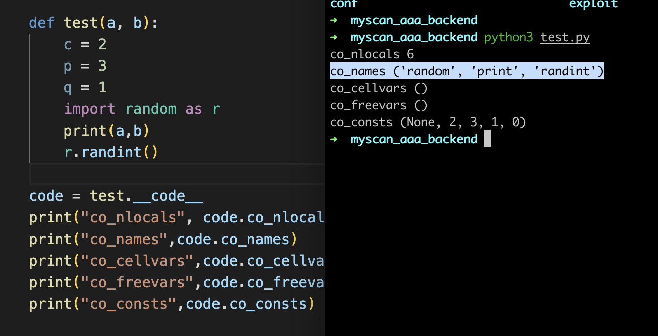 co_nlocal:局部变量的数量,这边的话就是6个,分别是a,b,c,p,q,random模块