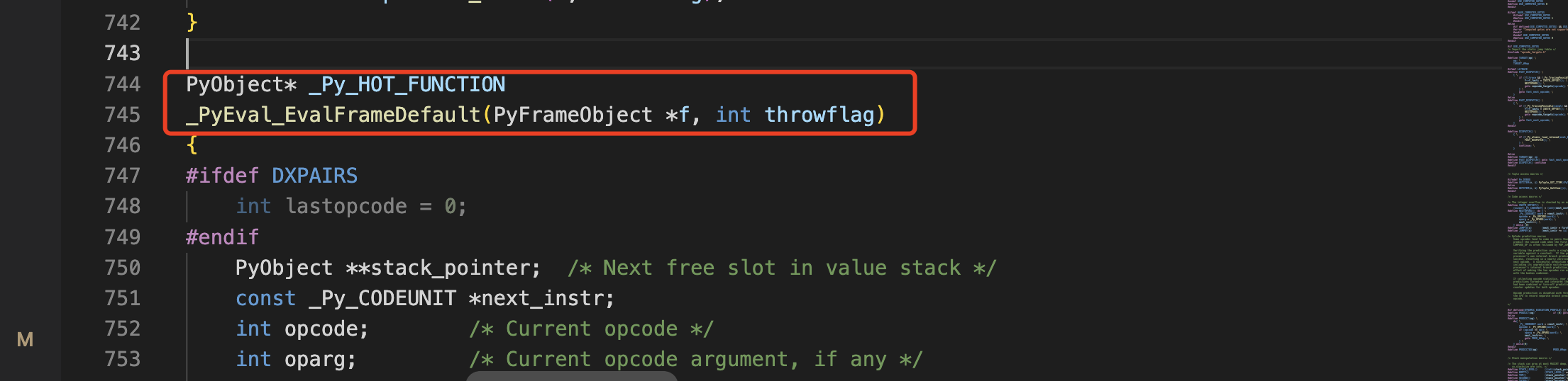 在Python/ceval.c文件中的_PyEval_EvalFrameDefault函数中,最关键的代码就是一个主循环,这个主循环的作用是不停的解析每一个收到的字节码,直到遇到退出条件