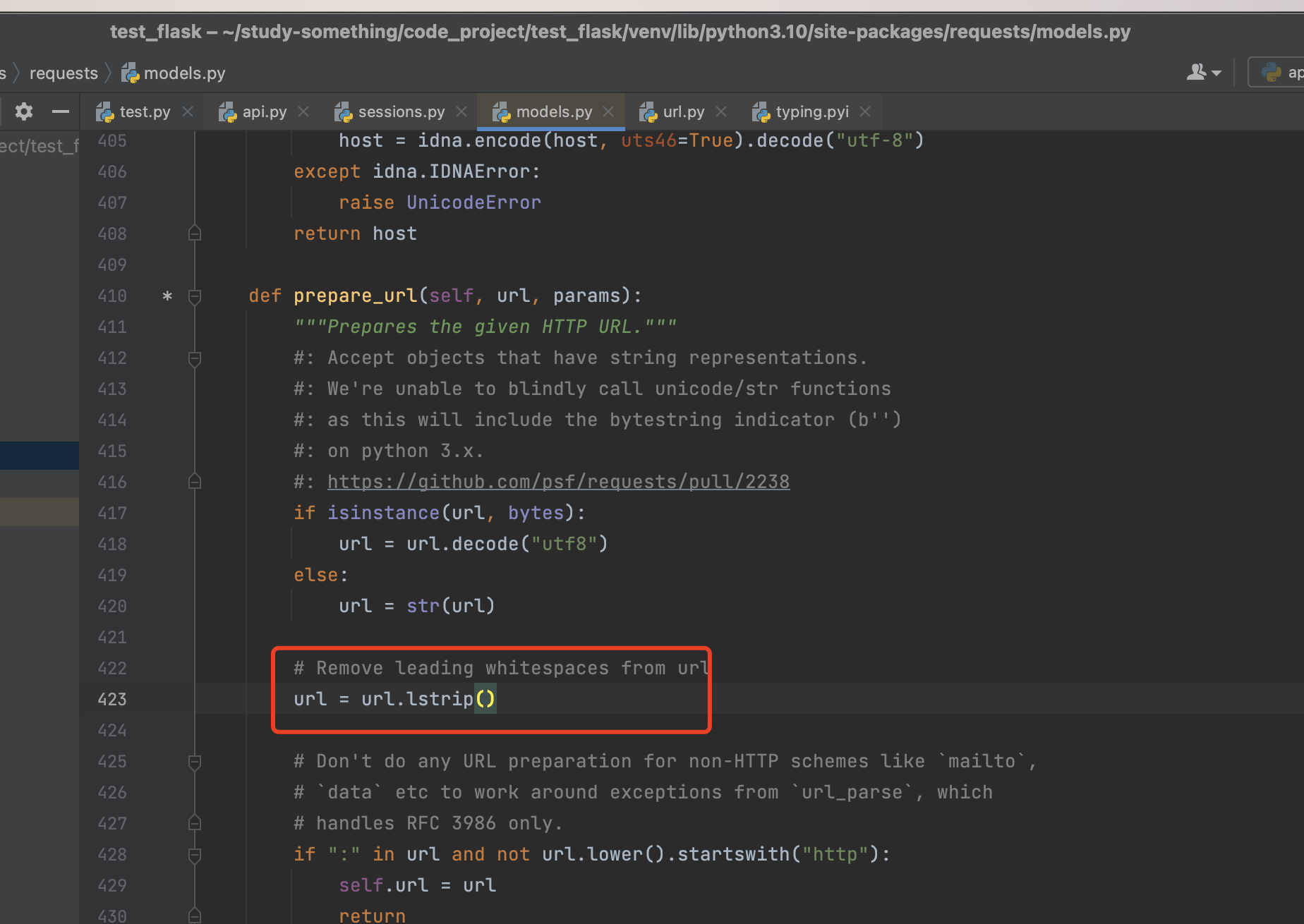 request.get在发起请求的时候,其中会通过urllib3模块会对传入的url数据首先进行去除左空格,然后再发起请求