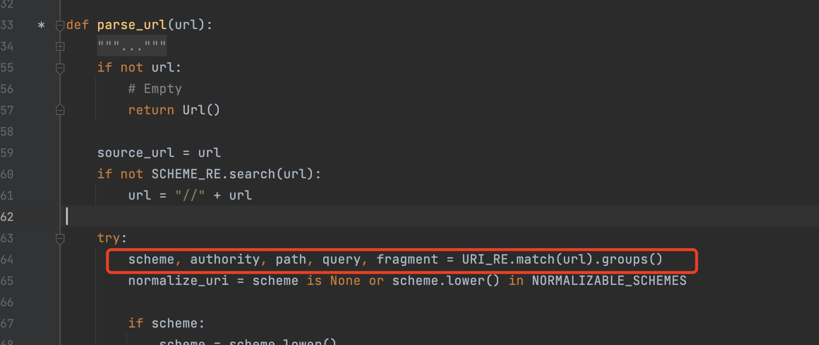 这里可以跟到urllib3.util.url.parse_url进行观察,对于url的解析是该地方进行触发的