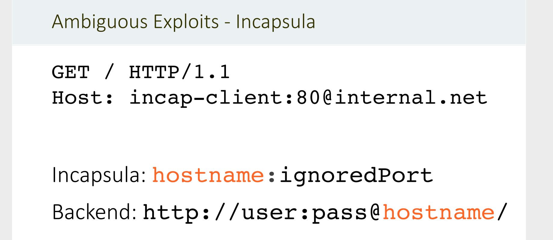 - @转发问题,bp中请求host指定为incap-client:80@internal.net,可能在后端转发处理的时候处理为