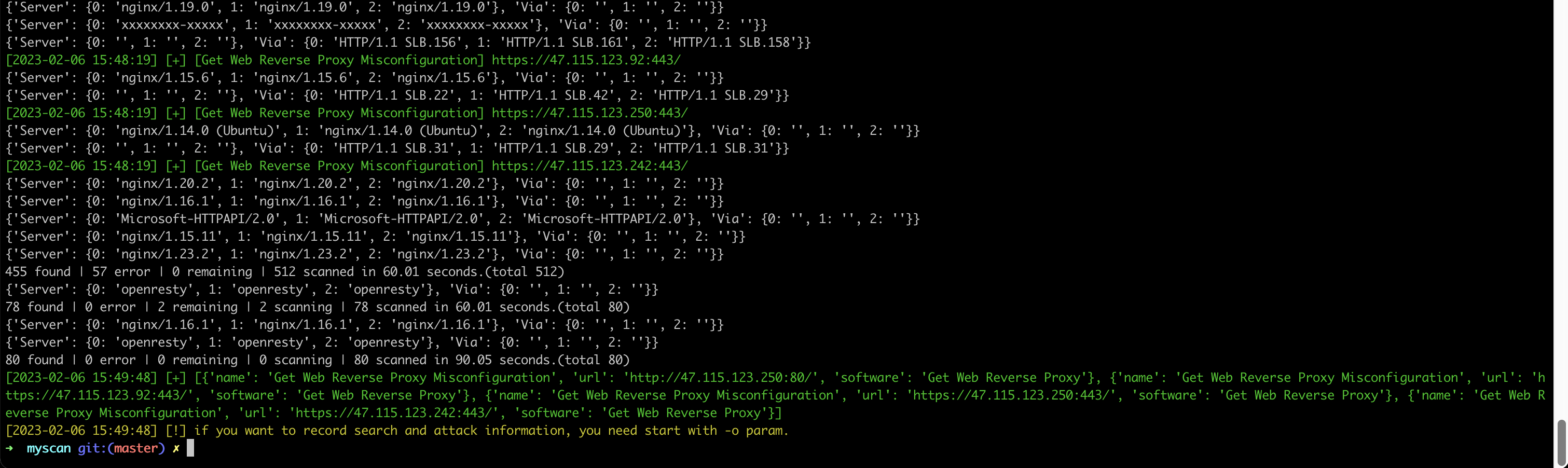 # python3 batch.py -m exploit.scripts.Info.reverseproxy.get_web_reverse_proxy -fs "\"nginx\" && country=\"CN\"" -cs