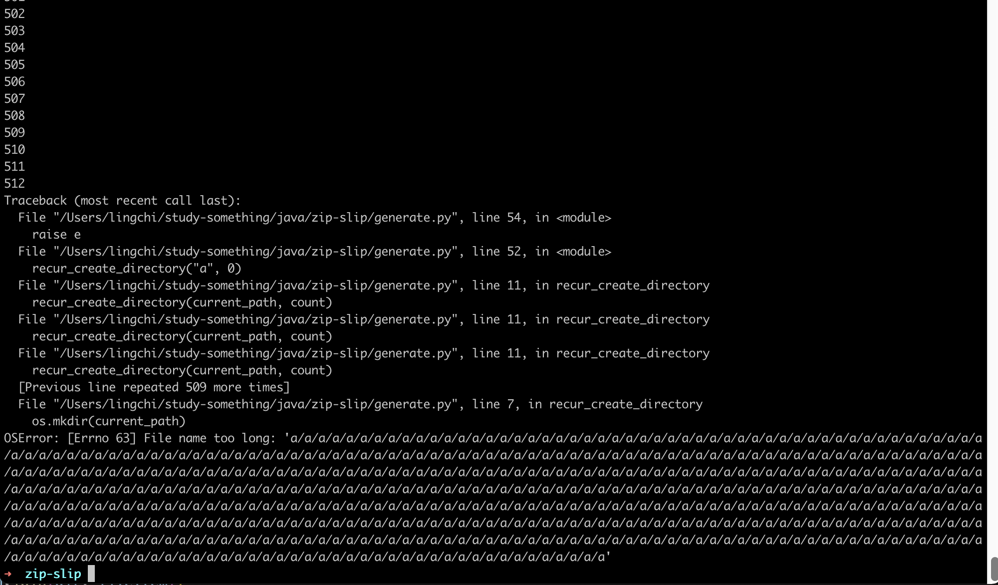 File dir = new File("/Users/lingchi/study-something/java/zip-slip/");