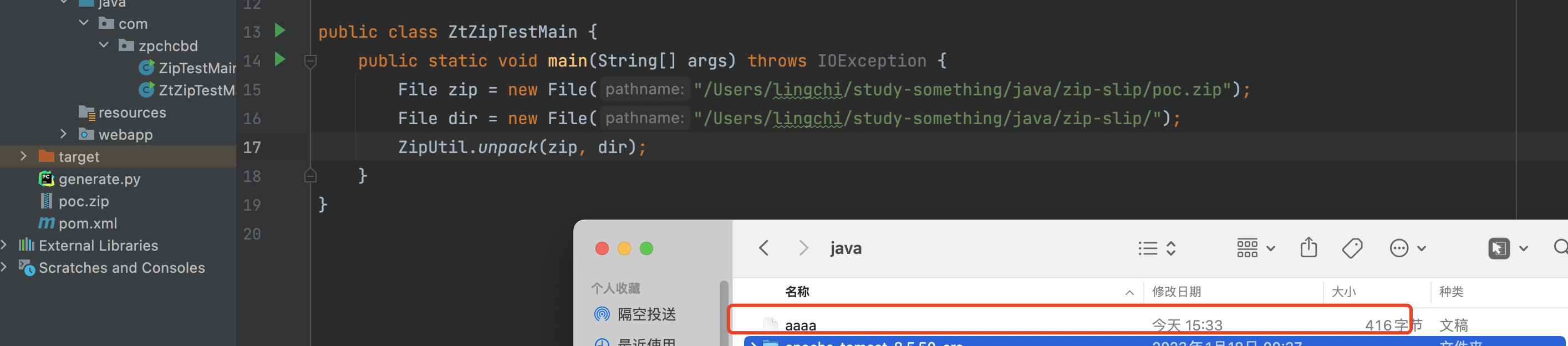 File zip = new File("/Users/lingchi/study-something/java/zip-slip/poc.zip");