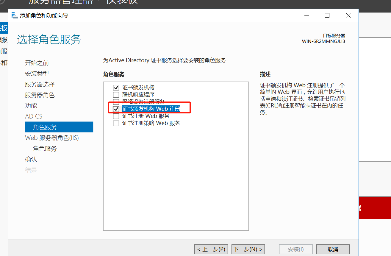 证书颁发机构Web注册:该组件提供了一种用户使用未加入域或运行Windows以外操作系统的设备的情况下颁发和续订证书的方法。