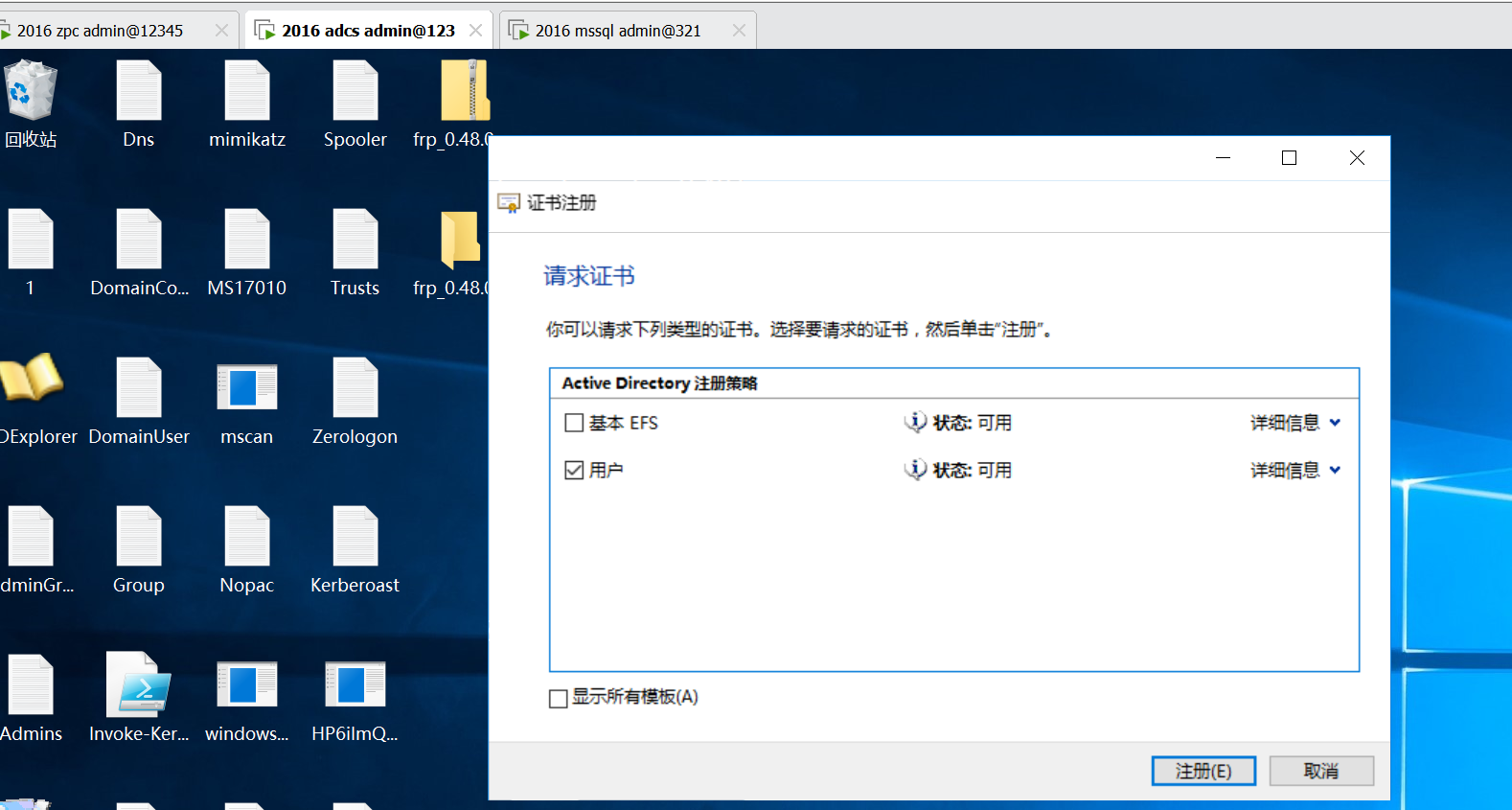 在ADCS开启了对应Web服务的情况下,使用Web服务注册