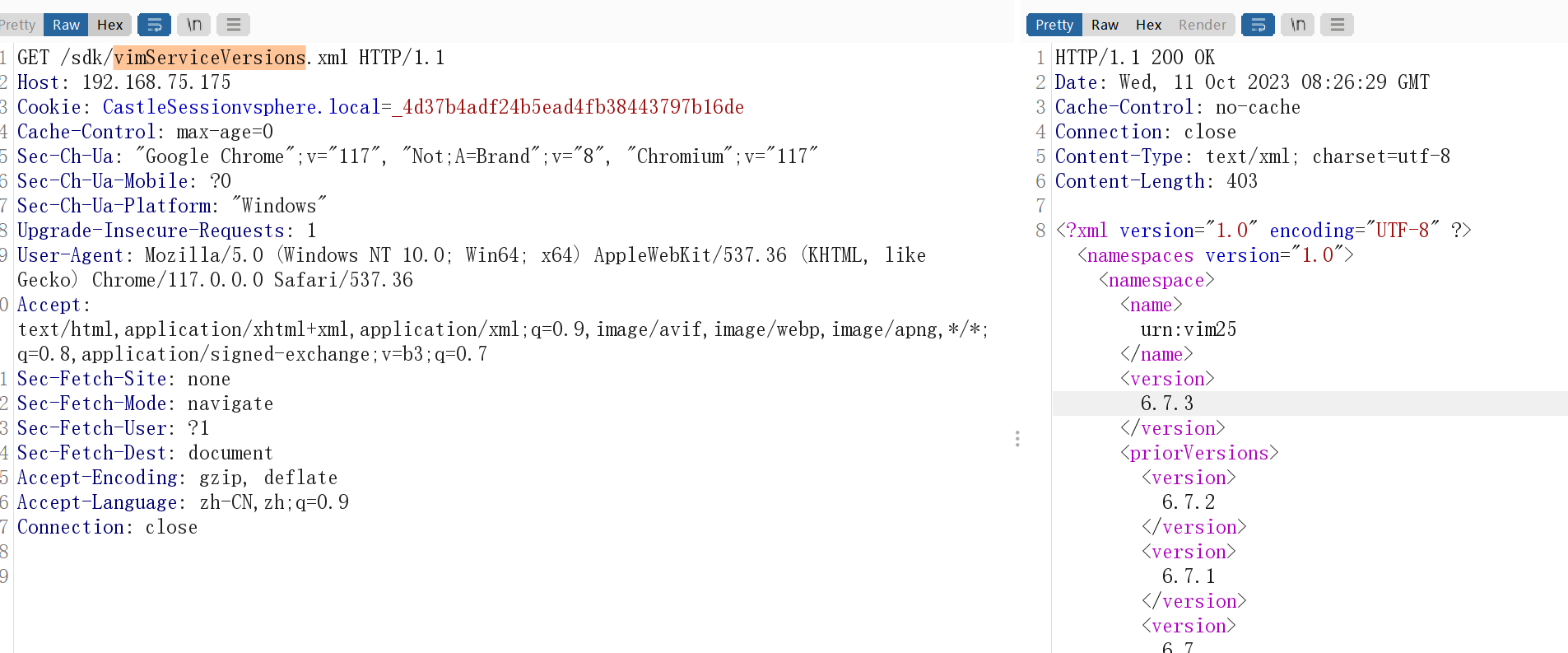 其中/sdk/vimServiceVersions.xml接口的话,一般都是获取vCenter的SDK版本,对应的SDK版本用于调用vCenter机器