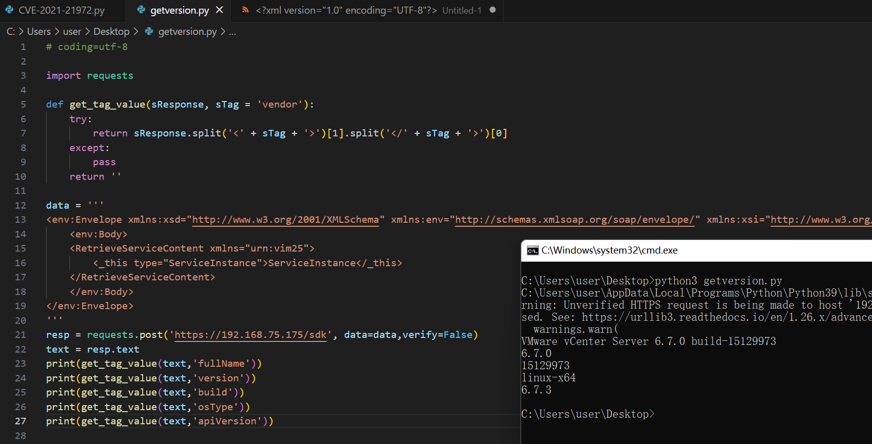 而比如CVE-2021-21985漏洞在v6.7中影响的版本有6.7到6.7 U3n版本中间,对应的6.7 U3n的版本为,那么当前系统则可以判断为存在漏洞,优先进行利用