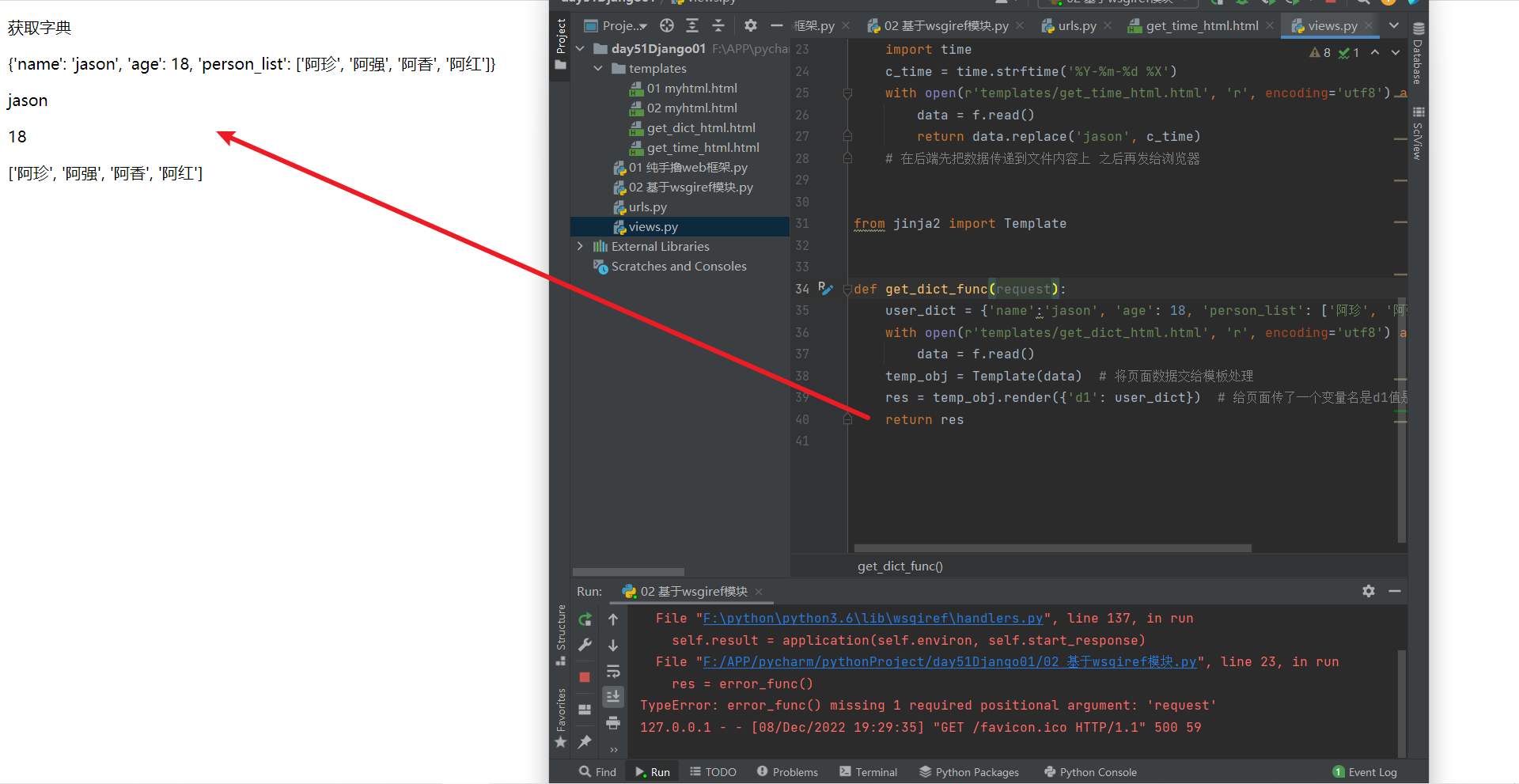 3.根据不同的网址后缀返回不同的内容>>>:研究大字典键值对
