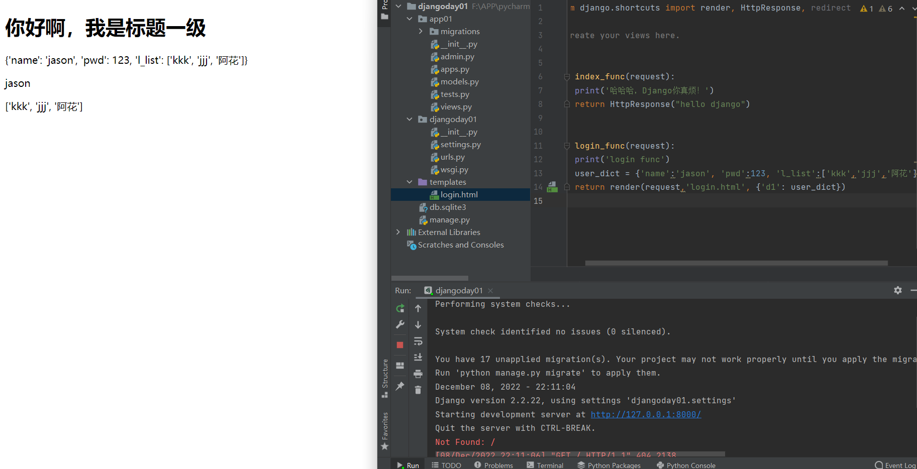 templates目录 存储html文件(命令行不会自动创建pycharm会)