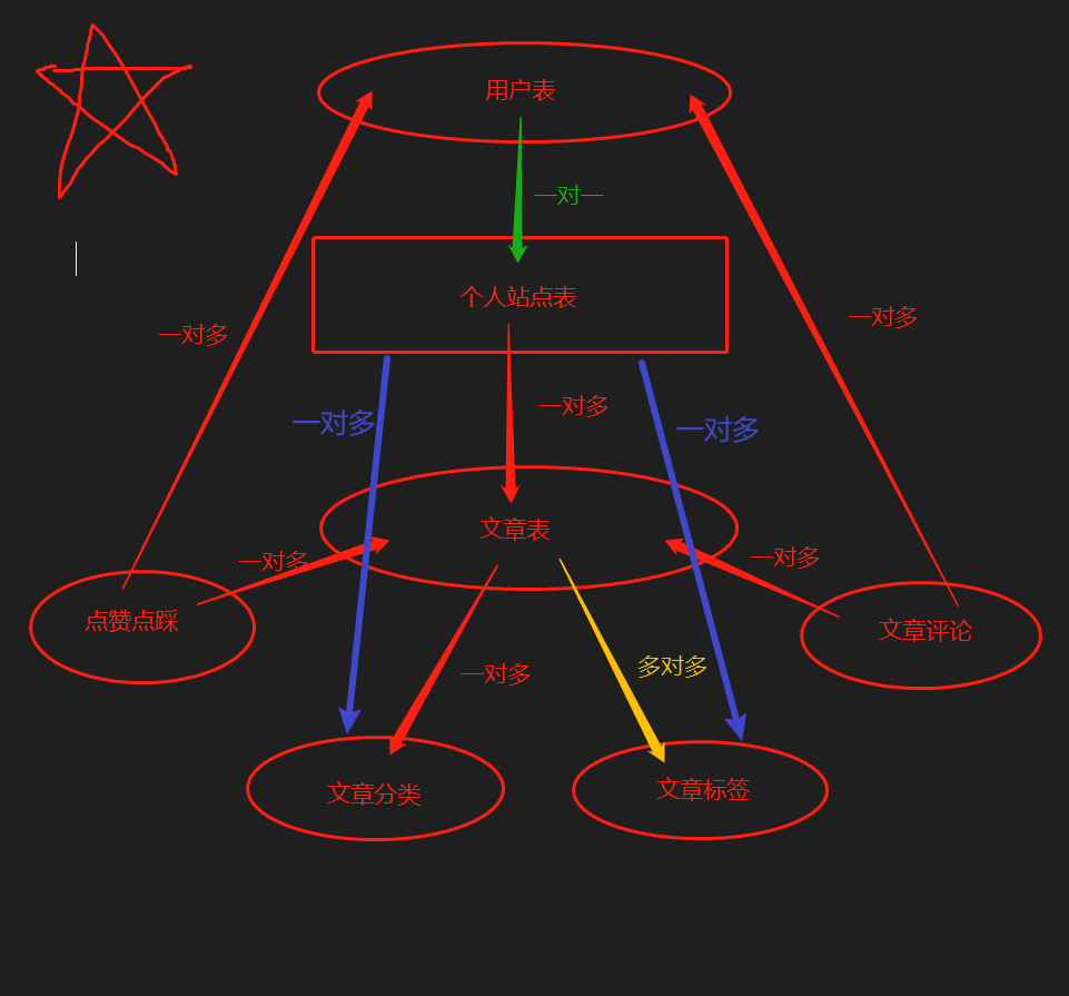 点赞点踩表:记录哪个用户给哪篇文章点了推荐(赞)还是反对(踩)