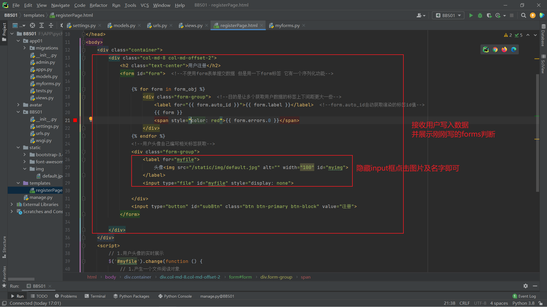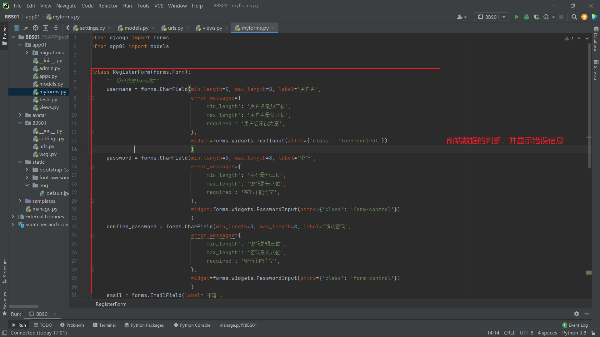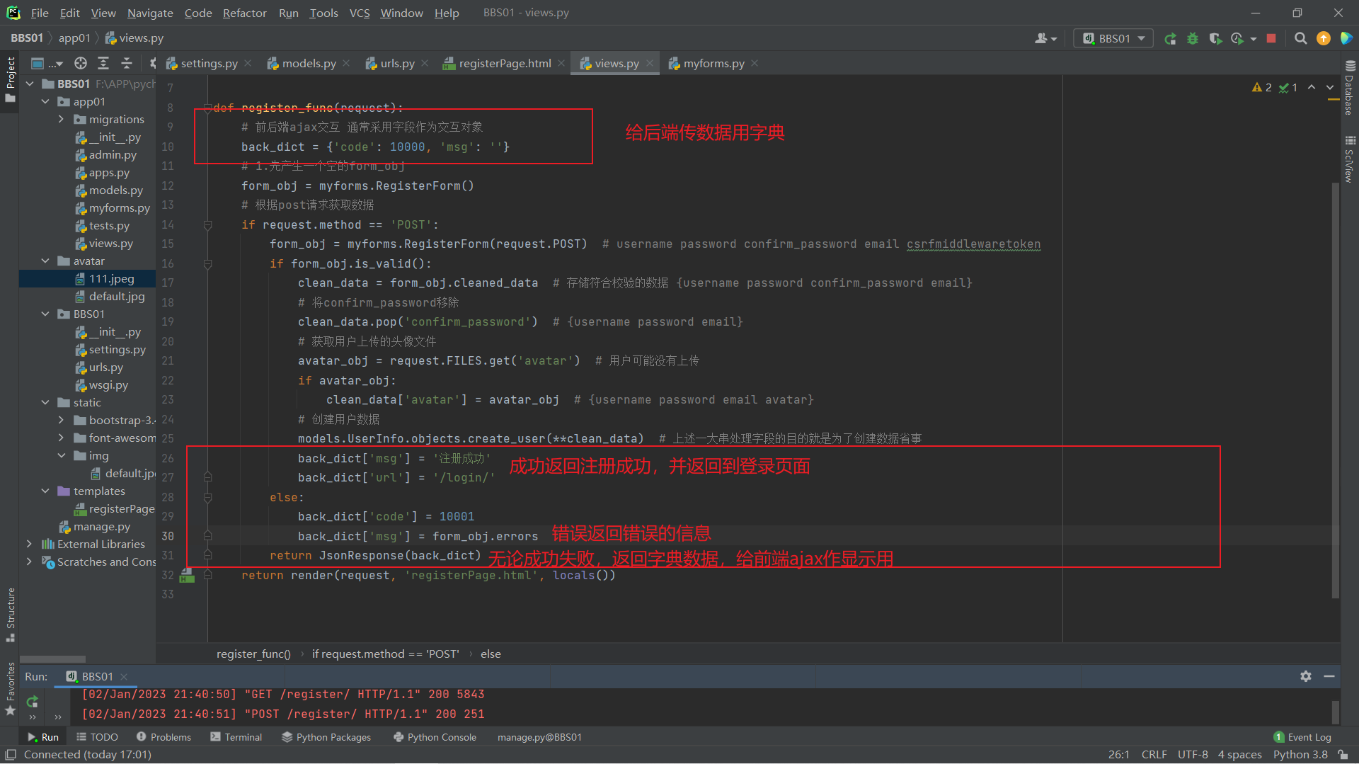 form_obj = myforms.RegisterForm(request.POST) # username password confirm_password email csrfmiddlewaretoken