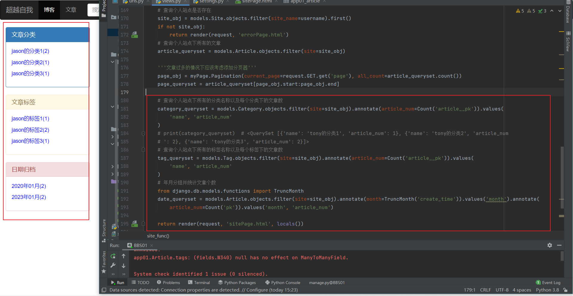 # 查询个人站点下所有的标签名称以及每个标签下的文章数